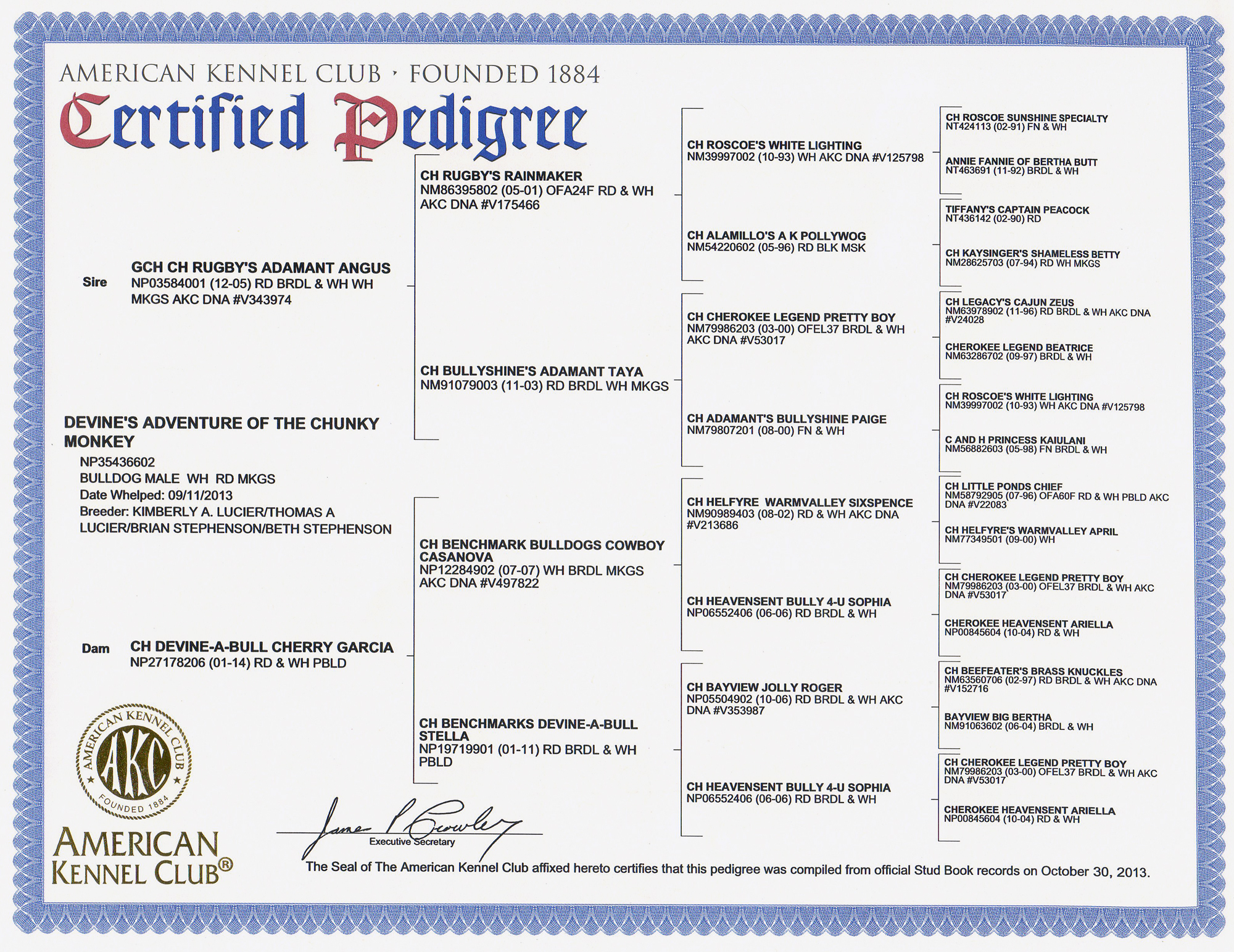 BISS CH Devine’s Adventure Of The Chunky Monkey “Yogi” Sire: MBIS MBISS GCH Rugby’s Adamant Angus Dam: BIS CH Devine-A-Bull Cherry Garcia Bred/Owned By: Kim Lucier, Tom Lucier, Beth Stephenson, Brian Stephenson Share this: Click to share on X (Opens in new window) X Click to share on Facebook (Opens in new window) Facebook Like Loading...